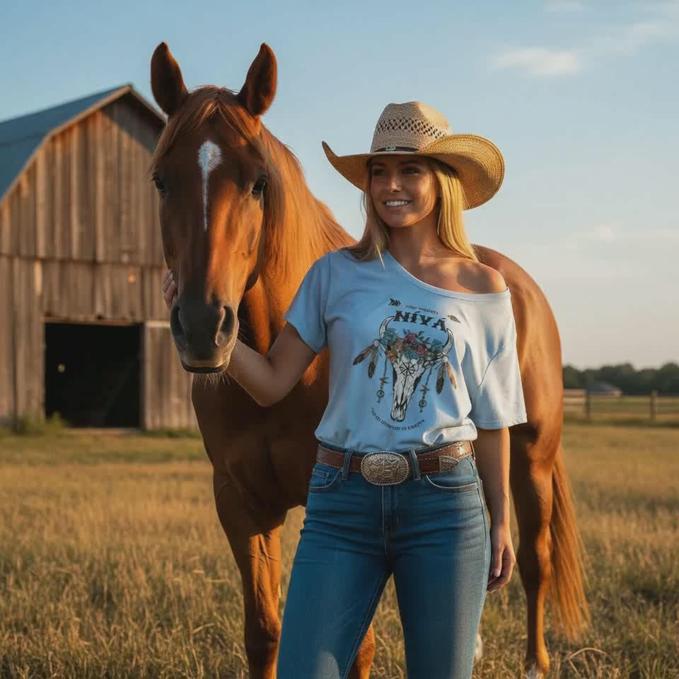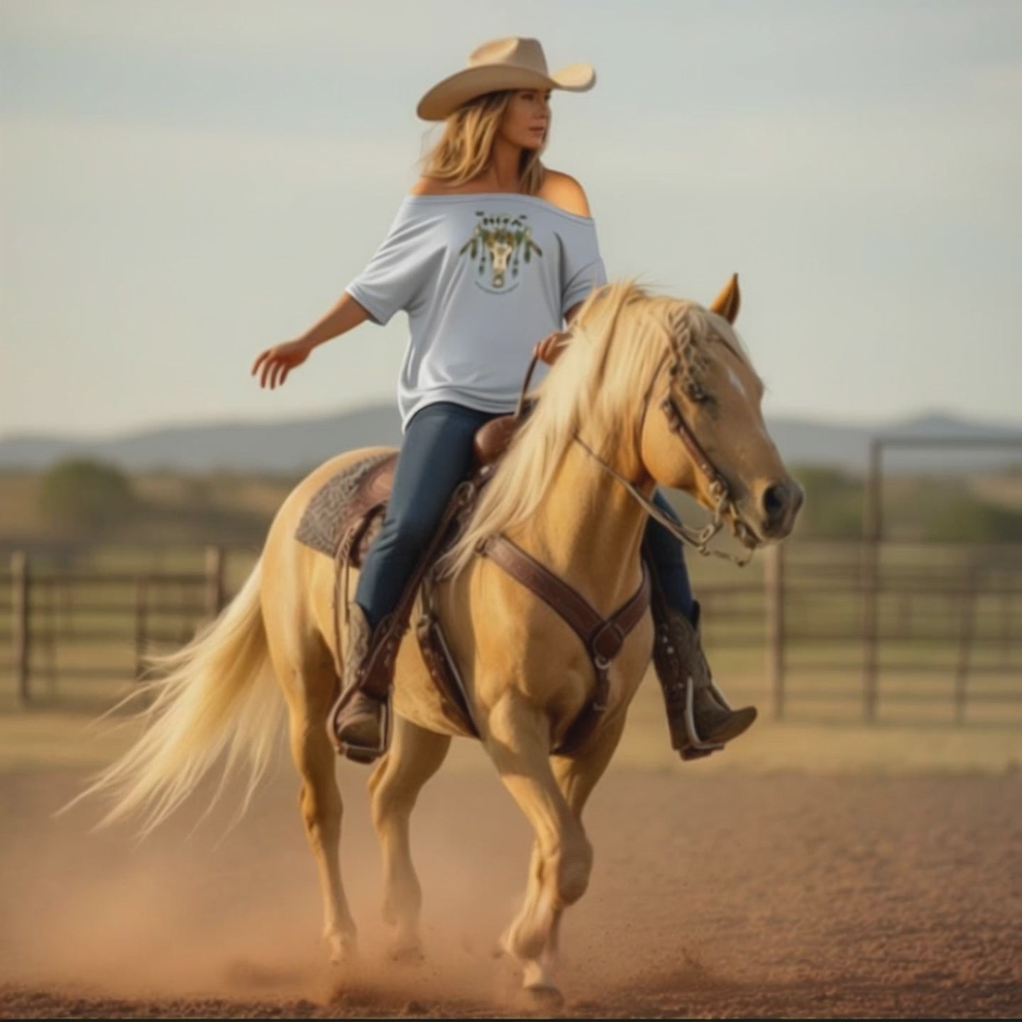 Celebrate strength and freedom with the Niya Slouchy V-Neck. Soft, drapey, and casually sexy, it features the iconic Valor Ranch graphic and captures the Native American-inspired meaning of valor. Perfect for pairing with jeans, boots, or just living life boldly.